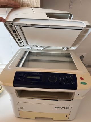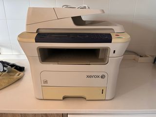 Impresora multifunción Xerox WorkCentre 3210 en color beige y blanco. - Escáner integrado. - Copiadora. - Conectividad USB. - La impresora tiene la tapa del escaner suelta, pero no afecta a su funcionalidad.