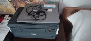 Impresora multifunción HP OfficeJet Pro 8022 con conectividad WiFi. - Escanea, copia e imprime documentos. - Diseño compacto en color negro y gris. Está en buen estado, pero los cartuchos pueden estar secos (ideal revisar o cambiar).