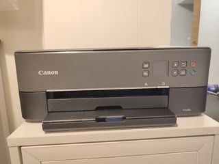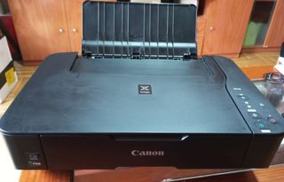 Impresora Canon con escáner. Imprime a color y en blanco y negro. Es totalmente nueva, solo se ha usado una vez para ver el resultado de la impresión. Tiene puestos los dos cartuchos: uno color negro y otro de color. Ya está configurada. Viene en su embalaje original.