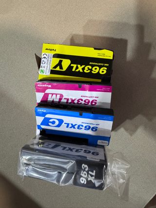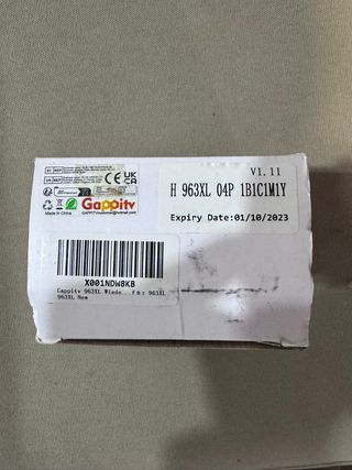 Pack de cartuchos de tinta Gappity 963XL. - Incluye cartuchos Negro (BK), Cian (C), Magenta (M) y Amarillo (Y). - Modelo: 963XL. - Fecha de caducidad: 01/10/2023.