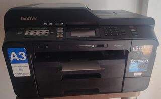 ¡Viene con recambios de tinta oficiales! (1x Magenta, 3x ByN) Impresora multifunción Brother MFC-J6910DW en perfecto estado de funcionamiento. Lo único negativo a destacar es que la bandeja de A3 no coge bien las hojas, pero se sigue pudiendo imprimir a ese tamaño poniendo las hojas manualmente por la parte trasera. Y la pieza de plastico donde se posan las hojas al salir la cambiamos por una de aluminio. - Impresión dúplex A3. - Copia y escaneo dúplex. - Impresión, copia y escaneo A4 y A3.