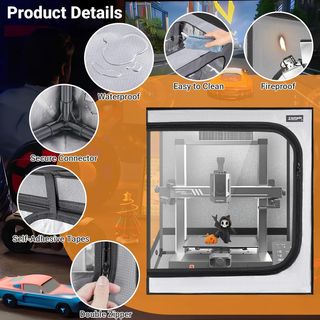 Cerramiento para impresora 3D con detalles de alta calidad. - Material impermeable. - Fácil de limpiar. - Resistente al fuego. - Conectores seguros. - Impresora libre de polvo y de corrientes de aire -Paneles transparentes para vigilar la impresora - Cremallera doble. - Con ventilador para extraccion de aire y tubo helicoidal - con luz lez