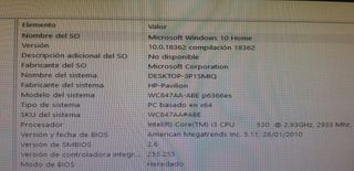 Ordenador HP modelo 6366es formateado...Inicia el sistema muy rápido...559Gb libres como se puede ver en una de las imágenes, al igual que detalles del sistema operativo (windows 10 home)...Monitor Acer...Se puede recoger en Segovia y podría llevarlo personalmente dentro de una distancia razonable..