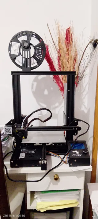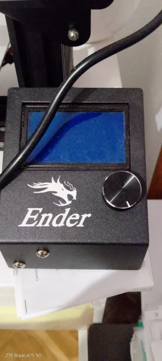 Impresora 3D Creality Ender en color negro. Incluye filamento,blanco y negro - Bobina de filamento blanco,y negro entero - Pantalla de control. - Soporte para bobina. - Cableado de conexión.