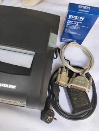 Impresora matricial de tickets Bixolon/Samsung SRP-275AG en color negro. Con conexión apertura de cajón. Se vende con cables y con un repuesto de cinta/tinta.