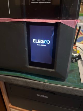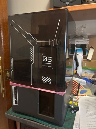 Impresora de resina 3D Elegoo Mars en color negro. Diseñada para la creación de modelos detallados. - Cubierta protectora translúcida. - Panel frontal con número '05' y diseño gráfico. - Base robusta. - pantalla nueva - con su kit usb espatula de acero espátula plastico mascarilla etc regalo tres peliculas fep de repuesto y dos cristales templados para la pantalla La vendo por que e adquirido la 4 ulta mas grande La última foto lo ultimo que impreso