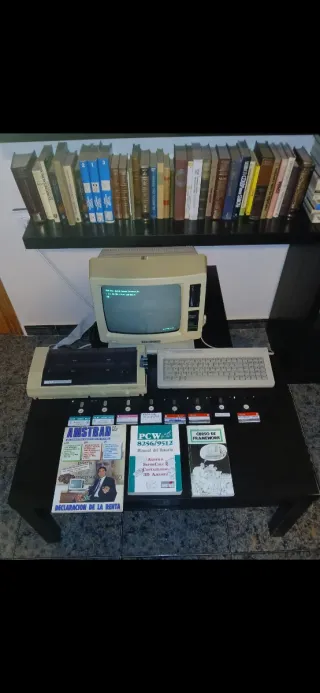 Equipo informático Amstrad PCW 8256 con accesorios. - Incluye impresora. - Se acompaña de disquetes. - Incluye teclado y monitor. - Varios manuales y revistas.