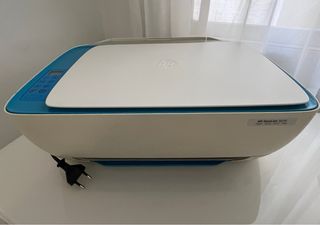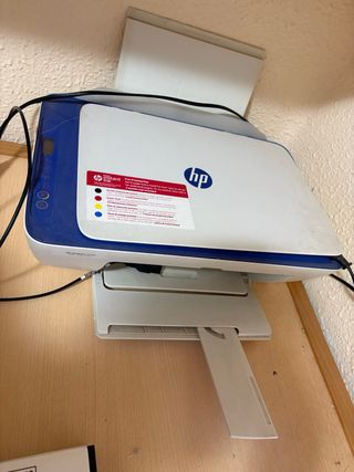 Impresora HP en color azul y blanco. Se vende para piezas, ya que no se sabe utilizar. - Modelo HP DeskJet 2700e. - Incluye cable de alimentación.