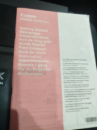 Impresora Canon PIXMA TS3100 en color negro. Incluye manual de inicio rápido. - Modelo: PIXMA TS3100 - Marca: Canon - Color: Negro Se enciende con normalidad Estaba en funcionamiento Ahora después de unos meses supongo habra k limpiarla o cambiar tintas Negociable vendo x no usar