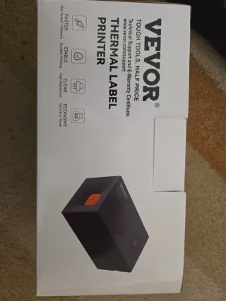 Impresora térmica para etiquetas de la marca VEVOR. Diseñada para una impresión rápida y de alta calidad. - Velocidad máxima de impresión: 150mm/s. - Impresión duradera y de alta resolución. - No requiere tinta ni tóner.