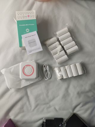 Impresora mini portátil, nueva a estrenar, con 16 rollos térmicos en total. *2 rollos están cortados, se puede ver en la última foto (el vendedor me lo envió así, al igual que la caja de la impresora, se le fue la mano con el cutter)