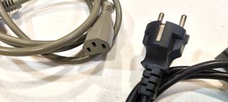 Lote de cables de alimentación para diversos dispositivos electrónicos. Cable con clavija conexión a red tipo Schucko y conector tipo C13 (común en PCs e impresoras), 3 uds , uno Negro de 1,83m., otro Gris de 1,86 m y otro Gris de 2,5 m. Cable con Euroconector, de 1,5 m. Sueltos 4 €, todos juntos 12€.