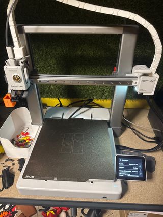 Impresora 3D Bambu Lab A1 en color gris y blanco. Diseñada para la creación de modelos tridimensionales. 220h de impresion.TIENE 3 MESES. CON FACTURA. Tiene hub para meter ams 2 y 2 pro (solo doy el hub) - Incluye pantalla de control. - Base de impresión texturizada. PREFERIBLEMENTE VENTA EN PERSONA