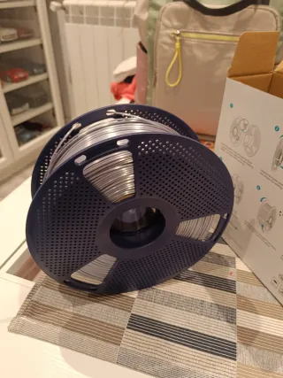 Rollo de filamento PLA con acabado silk en color plateado. - Material: PLA Silk. - Color: Plateado. Está entero apenas habré gastado 5 gramos.comprado por error por eso lo vendo.