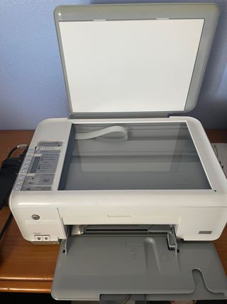 Impresora con escaner. El escaner funciona perfectamente pero la zona de cartuchos está para limpiar. Puede usarse con cartuchos recargables.