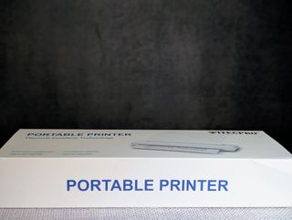 Impresora térmica portátil en color negro. - Incluye fuente de alimentación.