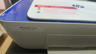 Impresora HP DeskJet 3637 en buen estado y poco usada. Combina funciones de impresión, escaneo y copiado. - Diseño compacto en blanco y azul. - Incluye cable de alimentación.