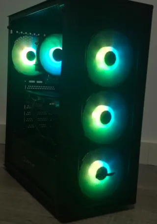 Ordenador de mesa con iluminación RGB. - Diseño moderno en color blanco. - Tres ventiladores frontales con luces LED + Ventilador atrás. - Procesador: Intel Core i5-7400 3GHz - RAM: 16GB - Windows 11 Pro 64 bits. - Perfecto para uso doméstico, estudiar, trabajar. Tira algún juego que pida poco.