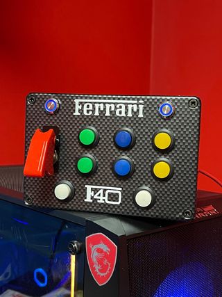 Vive la emoción del simracing con nuestra botonera USB hecha a mano! Controla tus juegos con precisión gracias a sus 11 botones de alta calidad, incluyendo 2 LED. Compatible con todos los juegos de Pc y vinilada con el emblemático Ferrari F40. ¡Obtén la tuya ahora y lleva tu experiencia al siguiente nivel! AÑÁDELE TU NOMBRE POR 5€ ✅ La caja tiene fácil acceso y modificación, también se podrían añadir nuevos botones a futuro, la botonera está fabricada sobre una caja estanca ip 65 con el frontal vinilada en fibra de carbono, (cable 1,5M USB) la caja puede ser instalada sobre cualquier tipo de superficie, ya sea mediante tornillo o velcro.