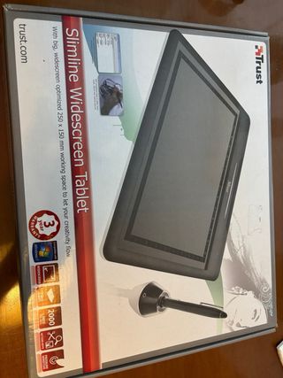 Tableta gráfica Trust Slimline Widescreen con un gran espacio de trabajo optimizado para que des rienda suelta a tu creatividad. - Superficie de trabajo: 250 x 150 mm. - Incluye lápiz óptico. - Compatible con Windows. - 2000 líneas por pulgada. - Sensible a la presión.