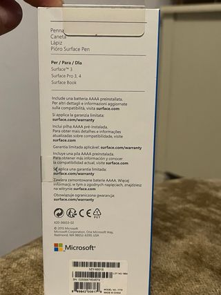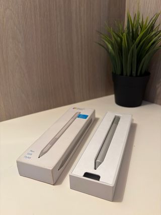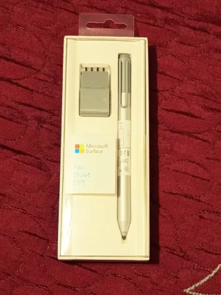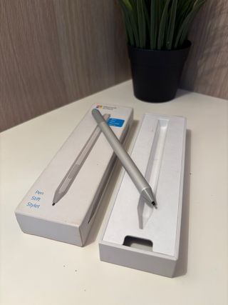Lápiz digital Microsoft Surface Stylet Stift 1710. Abierto y no usado. - Incluye 4 púas intercambiables a estrenar, para diferentes dibujos , con distintas formas, más finos y más gruesos. - Diseño plateado. - Incluyo baterías (pilas AAAA) - Válida para surface pro 3, 4, 5, ... Etcétera.. Probado y funcionan. Acepto el pago por wallapop, bizum, paypal y transferencia bancaria.