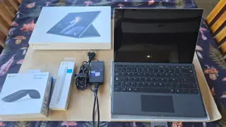 Se vende pack de Microsoft Surface Pro 5 LTE - Incluye cargador original. - Lápiz digital. - Ratón Microsoft Arc Touch Mouse. Es un I5 con 8 Gb de Ram y un nvme de 256 Gb de disco duro. Tal y como se aprecia en la fotos su estado es inmejorable.