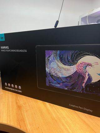 Pantalla creativa Huion Kamvas Pro 16 con resolución 2.5K - Diseño elegante y moderno - Ideal para artistas digitales y diseñadores - Experiencia de dibujo inmersiva - Lápiz inalámbrico sin necesidad de cargarlo Signos de desgaste en los punteros del lápiz usados (se muestra en la foto), el guante y el pañuelo algo desgastados. Lo entrego con caja y cables tal cual como Huion lo entrega y solo ha sido usado por poco más de seis meses en ilustración, todo demas esta perfecto y se ha cuidado muy bien Puedo entregarlo en Madrid