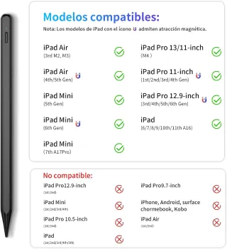 03281 ABIERTO SIN USAR . Lápiz para Apple iPad 2018-2025, 15Min Carga Rápida Stylus Pencil Compatible con iPad 6/7/8/9/10/11 A16,Mini 5/6/A17Pro,Air 3/4/5/M2/M3,Pro M4/11/12.9/13",Rechazo de Palma,Precisión de Píxel 【CARGA RÁPIDA USB-C】 Nuestro lápiz para iPad se carga en solo 30 minutos, ofreciendo hasta 15 horas de uso continuo. Ideal para viajes, oficina, escuela o hogar. Se apaga automáticamente tras 10 minutos de inactividad. 【COMPATIBILIDAD】 Funciona con: iPad Pro M4/M2/M1 (13"/11"), iPad Air M2/M3 (13"/11"), iPad Pro (12.9" 3.ª-6.ª gen), iPad Pro (11" 1.ª-4.ª gen), iPad Air (3.ª-5.ª gen), iPad (6.ª-11.ª gen), iPad mi...