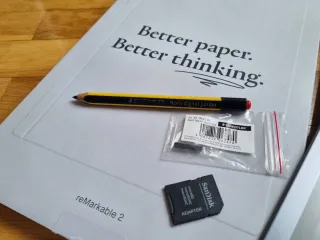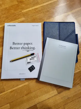Se vende reMarkable 2 como nuevo en su caja y con cable de carga + los siguientes accesorios: - Funda protectora azul (usada) - Lápiz Staedtler Noris digital Jumbo con goma de borrar (usado) - 4 puntas adicionales NUEVAS, Staedtler - Tarjeta microSD 1gb, con plantillas digitales a agenda electrónica desde 2026 a 2034 para usar en remarkable.