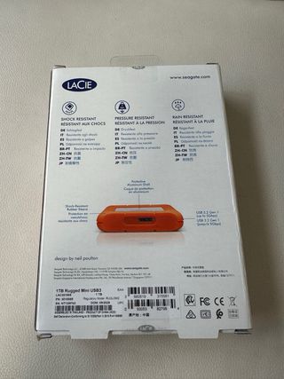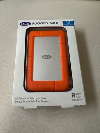 *NUEVO SIN ESTRENAR* Disco duro externo portátil LaCie Rugged Mini de 1TB. Ideal para PC, Mac, iPad y iPhone. - Capacidad: 1 TB - Modelo: Rugged Mini - Incluye servicio Data Rescue