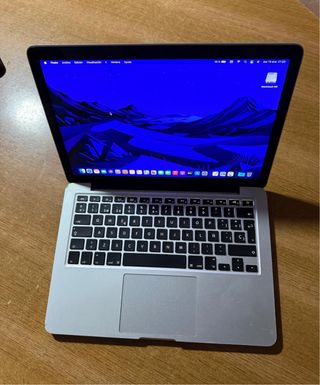 MacBook Pro Retina de 13 pulgadas, modelo de principios de 2015. En muy buen estado y funcionando perfectamente. Muy bien cuidado, lo vendo porque no lo uso. Fue reparado hace aprox. (coste de unos 200 €) un año y desde entonces sin problemas. Comprado en Canadá (enchufe americano). Cargador muy desgastado (ver fotos), funciona pero está deteriorado; se puede incluir o entregar sin cargador. El ordenador va muy bien y no tiene fallos.