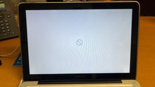 Portátil MacBook Pro en color plata. - Diseño elegante y moderno. - Carcasa de aluminio. - Disco duro hhd 500 GB - Memoria RAM 4 Gb - Cargador Incluido - No me arranca, cuando lo enciendo me sale eso en la pantalla, por eso lo pongo como que lo ha dado todo, por si alguien lo sabe arreglar