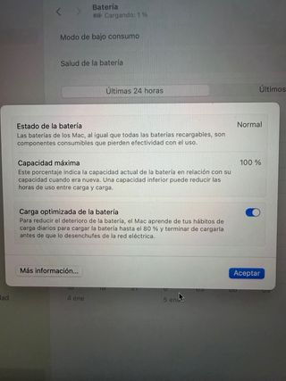 MacBook Air en perfecto estado, prácticamente sin uso. Un portátil ligero y potente para tu día a día. - Modelo: MacBook Air - Color: Plata - Condición: Normal - Capacidad máxima: 100% - Número de ciclos: 24