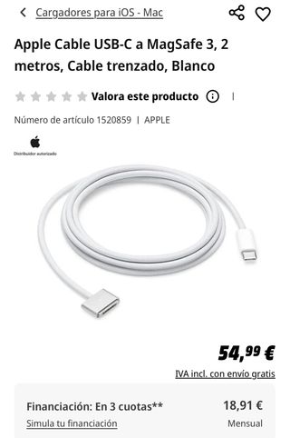 Hola, Vendo Cable Tipo C- MagSafe 3 Trenzado, Apple Original. Color Media Noche, Nuevo, Sirve Para Varios Modelos De MacBooks, Se Hacen Envios, Gracias.