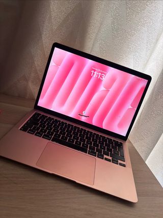 Portátil MacBook Air de 13,3 pulgadas, modelo de 2020. Su diseño elegante y ligero lo hace perfecto para llevar a todas partes. - Color: Oro Rosa -Versión: 15.6.1. - Pantalla Retina de 13,3 pulgadas en perfecto estado -Almacenamiento 256GB -Procesador 1,1 GHz Intel Core i3 de doble núcleo - Teclado retroiluminado