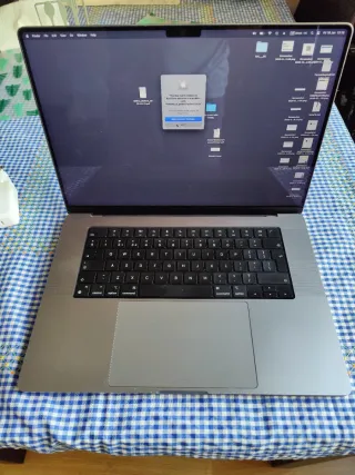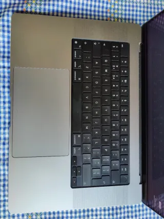 MacBook Pro de 16 pulgadas con chip M1 Max, 32 núcleos. 32GB de RAM y 512GB SSD. Funciona perfectamente y en buena condición. La batería tiene 100 ciclos, 99% de su capacidad. Se vende con su cargador de 140w y cable magsafe. Tiene teclado británico pero tengo un juego de tapas de teclas para cambiar el teclado a castellano. Solo trato en mano. Vivo cerca metro Camp de l'Arpe.