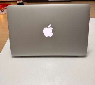Portátil Macbook Air de Apple en color plata con el icónico logo iluminado. En perfecto estado sin golpes ni ralladuras. Cargador original. Batería en buen estado. Diseño elegante y ligero. Acabado metálico premium. Info y características en las fotos.