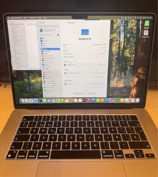MacBook Air de 15,3 pulgadas con chip M3. - Chip: Apple M3 - Memoria: 8 GB - Almacenamiento: 179,85 GB disponibles de 245,11 GB - Pantalla Retina integrada Comprado por capricho y apenas se ha usado batería al 99por ciento y sin un rasguño.Regalo funda y mousse q no ocupo