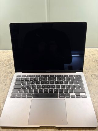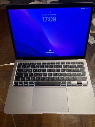 Vendo MacBook Air 13,3” (2020) en buen estado y totalmente funcional. Ideal para estudios, trabajo de oficina, internet y uso diario. Especificaciones: Pantalla Retina 13,3”, Intel Core i3 1,1 GHz, 8 GB RAM, 256 GB SSD, gráficos Intel Iris Plus, macOS Sequoia 15.6.1. Estado: Batería en estado Normal. Funciona perfectamente. Marco/plástico alrededor de la pantalla dañado en una zona (ver fotos), no afecta al uso ni a la imagen. Ligeras marcas normales de uso. Teclado español (ES). Cargador incluido: adaptador original funciona bien, cable dañado (recomendable cambiarlo). iCloud eliminado, reseteado de fábrica.
