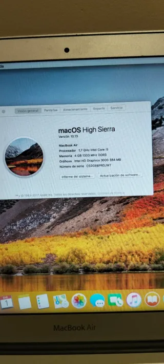 MacBook Air de 2011 en perfecto estado. Batería en buen estado Funciona todo perfectamente High Sierra Precio 145euros