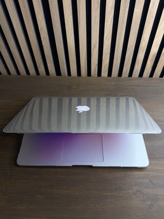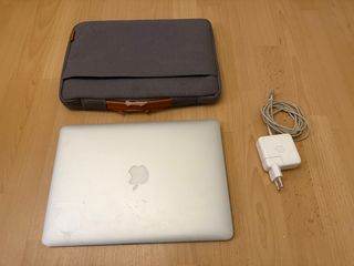 MacBook Air de 13 pulgadas de principios de 2015, con poco uso y en buen estado. SSD de 128 GB. Se vende con su cargador original y una funda protectora. Entrega en mano. - Pantalla de 13 pulgadas. - Procesador Intel Core i5. - 4 GB de RAM. - SSD de 128 GB. - Sistema operativo macOS. - Cargador Apple original. - Funda de tela gris con detalles en cuero.