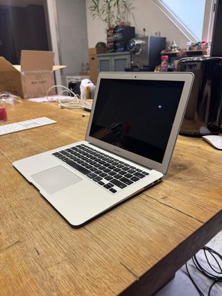 MacBook Air (13 pulgadas). Tiene un golpe en la carcasa y la batería necesita reemplazo (1309 ciclos), pero el equipo funciona correctamente. Lo vendo porque me he comprado un portátil nuevo. Ideal para reparar o usar para piezas. Procesador 1,6 GHz Intel Core i5 de doble núcleo. Memoria 4GB 1600 MHz DDR3. Versión 12.7.4 instalada.