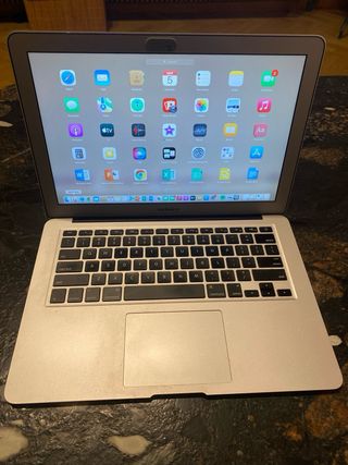 MacBook Air en muy buen estado. - Modelo: MacBook Air 2015 - Incluye cargador (toma china con adaptador). Perfecto estado. Fue mi regalo de cumple en 2015. nunca he tenido ningun problema. no se puede actializar con las versiones recientes de Apple, es lo unico. perfecto para trabajar en word/excel etc y navegar por internet/ver pelis. Hice una limpieza y un reseteo total en 2024. Como nuevo dentro. Viene con el pack office instalado. Tiene una marca de uso en el teclado (ver foto) pero el resto está perfecto. no hago envios. a recoger en entrevias.