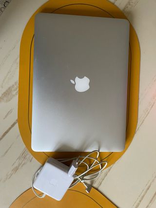 Ordenador portátil de la marca Apple en acabado gris plata. - Diseño elegante y moderno. - Carcasa de aluminio. - Logo de Apple en la tapa. - Incluye cargador y carcasa protectora. - En perfectas condiciones y muy buen funcionamiento. Precio negociable