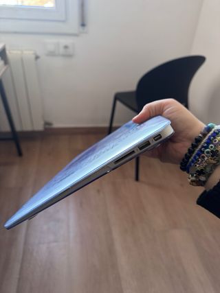 Vendo MacBook Air de 13 pulgadas en estado impecable. Apenas ha sido utilizado y siempre ha estado muy bien cuidado. No tiene ningún rasguño, tanto la carcasa como el teclado y la pantalla están perfectos (se puede ver en las fotos reales). La batería está en muy buen estado y dura varias horas de uso sin problema. Funciona rápido y fluido gracias al SSD y a sus 8GB de RAM. Listo para usar y entrego restaurado de fábrica.