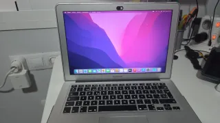 Vendo MacBook Air de 13 pulgadas (modelo 2017) en muy buen estado general. Acaba de ser formateado y dejado de fábrica, listo para usar desde el primer encendido. 🔹 Especificaciones técnicas: 💻 Modelo: MacBook Air 13” (2017) 🧠 Procesador: Intel Core i5 1.8 GHz (doble núcleo) 💾 Memoria RAM: 8 GB 1600 MHz DDR3 🎨 Gráficos: Intel HD Graphics 6000 🖥️ Resolución pantalla: 1440 x 900 🌀 Sistema operativo: macOS Monterey 12.7.6 (recientemente instalado) 🔋 Estado de la batería 1.144 ciclos — muestra aviso de “reparación recomendada”