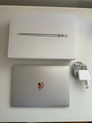 MacBook Air de 2020, un portátil ligero y potente. - Incluye cargador. - Incluye pegatinas de Apple. - Incluye manuales y caja original. Siempre con funda, sin ningún golpe ni abolladura, se ha utilizado para temas de oficina y poco mas. Se vende por cambio a modelo superior. Extremadamente cuidado.