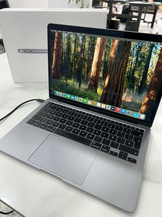 Portátil MacBook Air con chip M1. Diseño elegante y ligero. Especificaciones técnicas: • Modelo: MacBook Air M1 (2020) • Pantalla: 13,3" Retina (2560×1600) • Procesador: Apple M1 • Memoria RAM: 8GB • Almacenamiento: 251 GB • Color: Gris espacial • Sistema operativo: macOS Estado: • Funcionamiento perfecto • Batería en condición normal (92% de capacidad máxima) Incluye cargador original de Apple y funda de transporte.