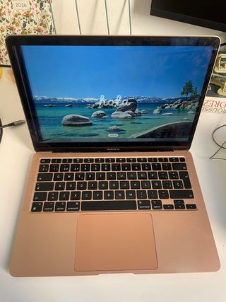 MacBook Air de 13 pulgadas del año 2020. Un portátil elegante y potente. Oro rosa 🔹 Características principales • Pantalla Retina 13” • Touch ID (lector de huella) • Teclado cómodo y silencioso • Muy ligero y fácil de transportar • Ideal para estudios, trabajo, clases online, gestión diaria y uso personal 🔹 Estado • Muy bien cuidado • Sin golpes ni caídas • Funcionamiento perfecto • Uso normal de un equipo de este año • Siempre protegido desde el primer día 🔹 Incluye • Protector incluido • Portátil listo para usar