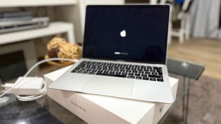 Caja de un MacBook Air de 13 pulgadas con el chip M1 de Apple, lanzado originalmente en 2020.